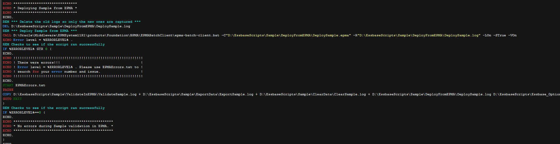 Recently I wrote a script to automate some of the administrator tasks that go back and forth between EAS and EPMA. This also performs error trapping and stops whenever an error is encountered. Here are some of the key points to the script: