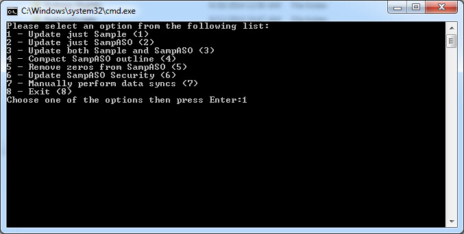 For the first example, if we choose to update the “Sample” outline from EPMA, we will choose “1”. This is what the user will see: