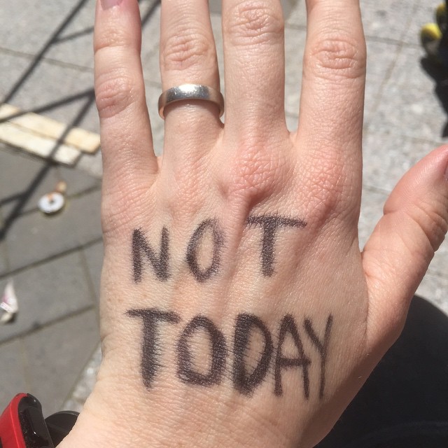 So, I accomplished my goal of running a marathon on my 33rd birthday in personal record time. Special thanks to the following people that financially supported my goal of raising money for The V Foundation. You kept me motivated more than you know. I wrote “NOT TODAY” on my hand yesterday to remind myself that (yesterday) today, I am not quitting. I am not letting my contributors, YOU, down. I’m not letting Chris down. I’m not finishing weak. I’m not giving in to pain. I’m not giving to fatigue. I’m not giving up. Not today.