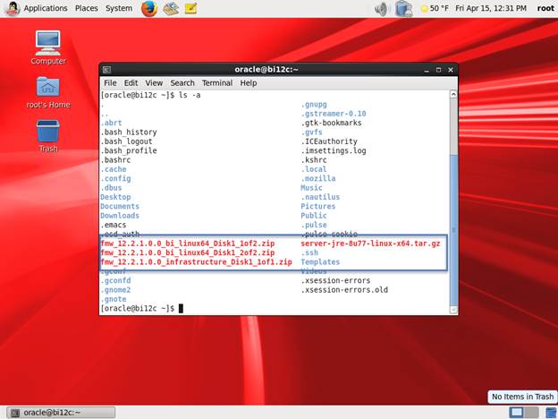 1. From the terminal, I yum’ed the following command (sorry, no screenshot) to get the 12cR1 preinstall files installed.