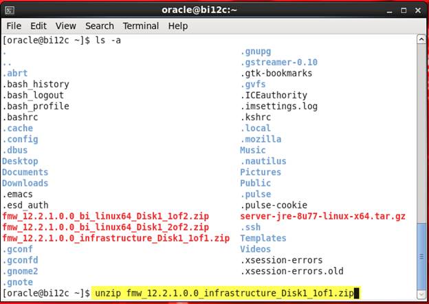5. Next, I want to install the WebLogic Server, the file called “fmw_12.2.1.0.0_infrastructure_Disk1_1of1.zip”.