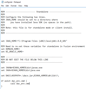 1. Following the installation instructions from one of my previous posts, I updated the config.bat file with my Java JDK home.