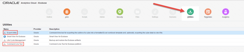 If you have played around with Essbase Cloud Service (EssCS) at all, you may have noticed a couple items on the Utilities tab. Specifically the “Export Utility” and the “Command Line Tool”.