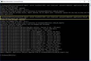 Now to import the application… I tried the import command for a new cube first, but because I already have the cube in my environment, I was given an error and told to use “-overwrite” in my parameters. So, that’s what I did (shown with the yellow box). The command I used for the import was: