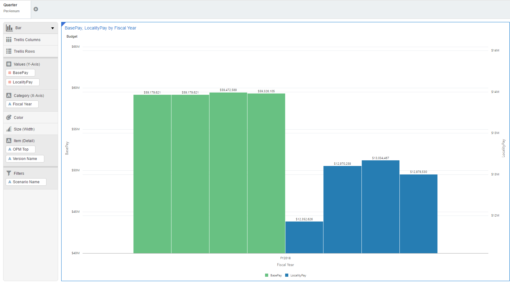 Note that I filtered out to only Budget by putting the Scenario Name in the visualization filters and chose “Budget”.