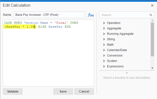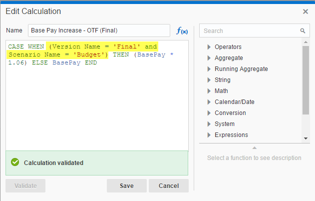 Now, if I want to adjust the numbers behind my new Version, it’s as simple as adjusting the calculation, not the Essbase cube!