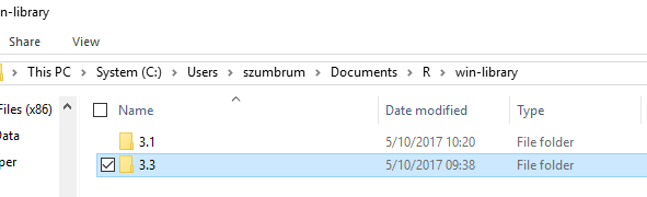 When I went to my R directory, I see my 2 R installations. It seems as though DVD does not connect to the most recent installation by default. It will run what is installed from the command line when installing Advanced Analytics for Data Visualization Desktop.