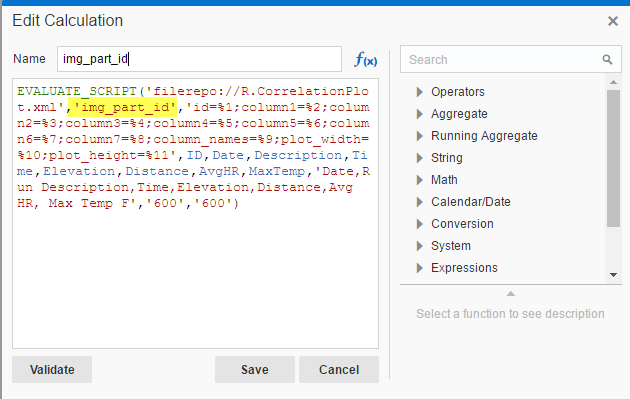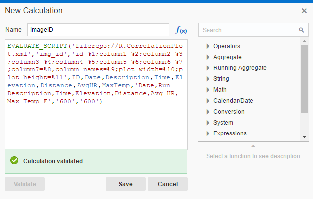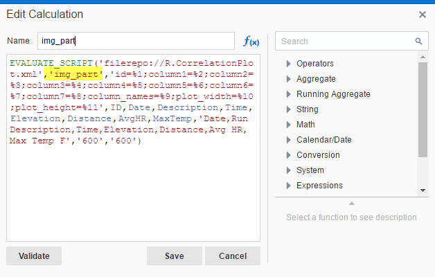 To see clues on how to build out my Half Marathon Stats correlation visualization, I took a look at the 3 calculations created for the sample project.