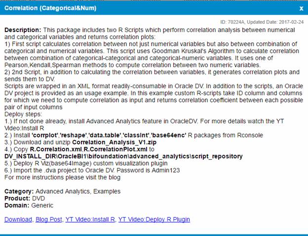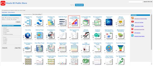 From the Oracle BI Public Store, I am choosing “Correlation”.