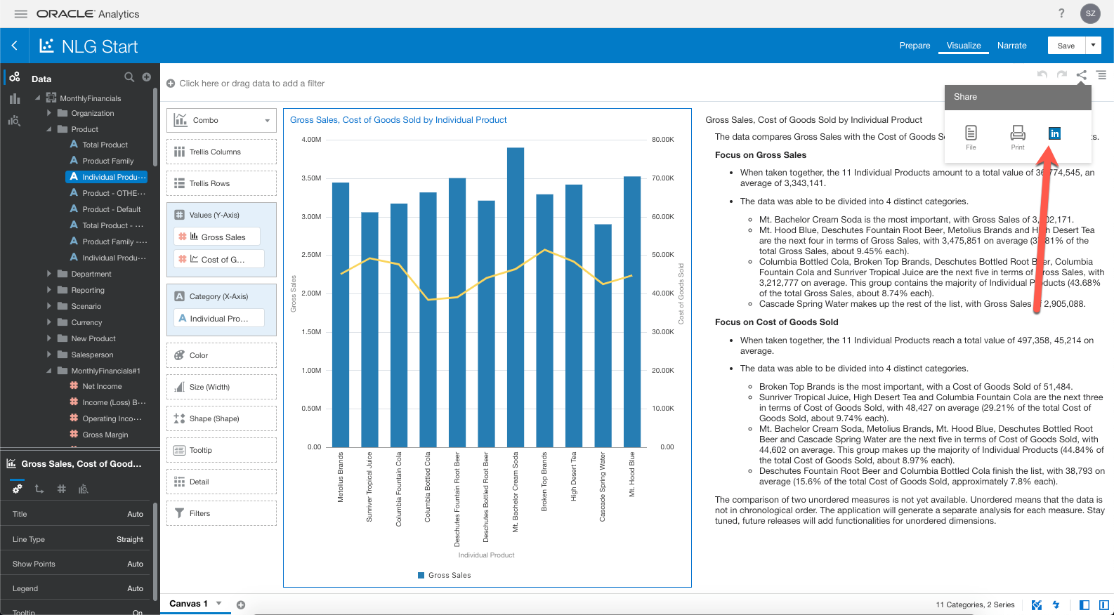 With the new 5.3 release of OAC, there is an option to post visualizations to various social media sites. I’m going to walk through the steps to post to LinkedIn (since Slack is internal to Oracle and I deleted my Twitter account).
