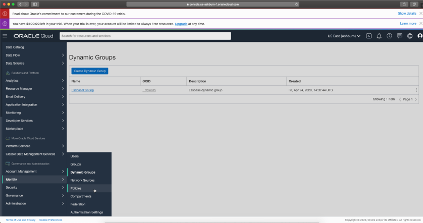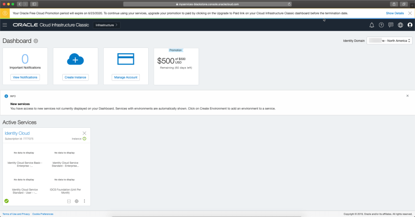 For the instance I was building, the first screen goes to the Gen1 OCI dashboard.