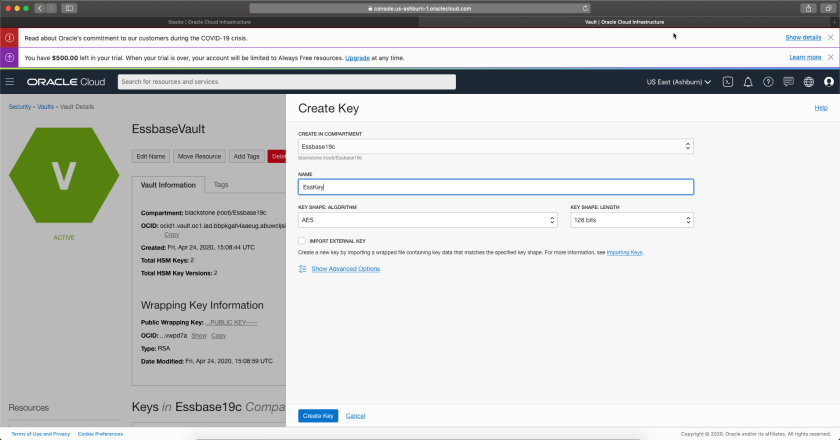 image043 image044 image045 Make sure you copy the Crytographic Endpoint URL to your text editor. You do not need the Vault OCID.
