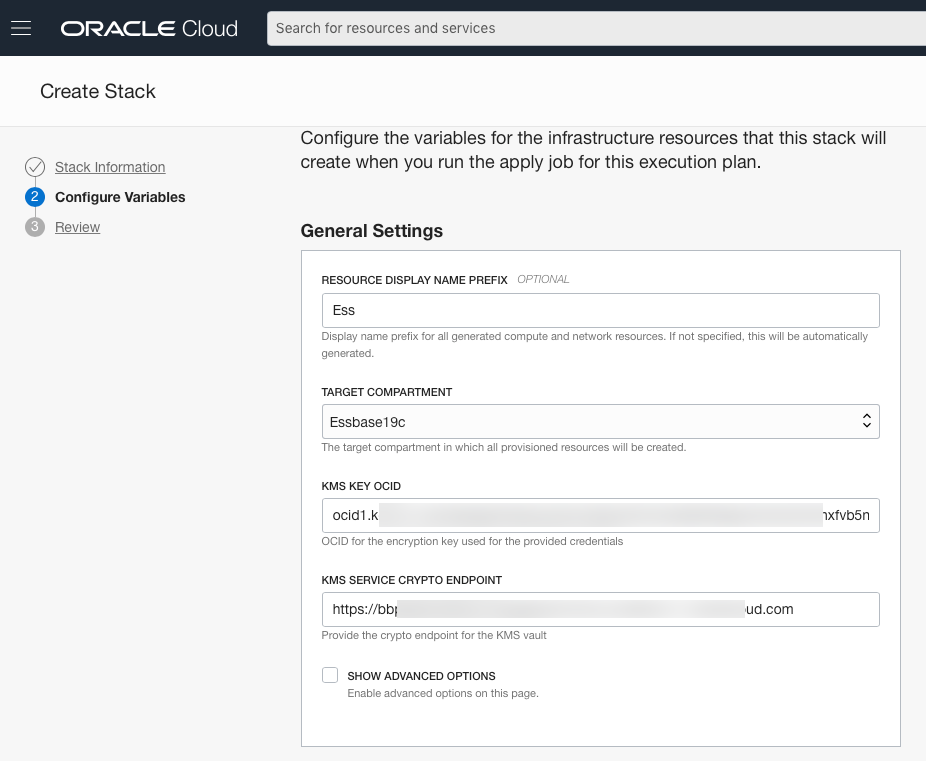 In the KMS Key OCID, enter OCID from your Vault Key.