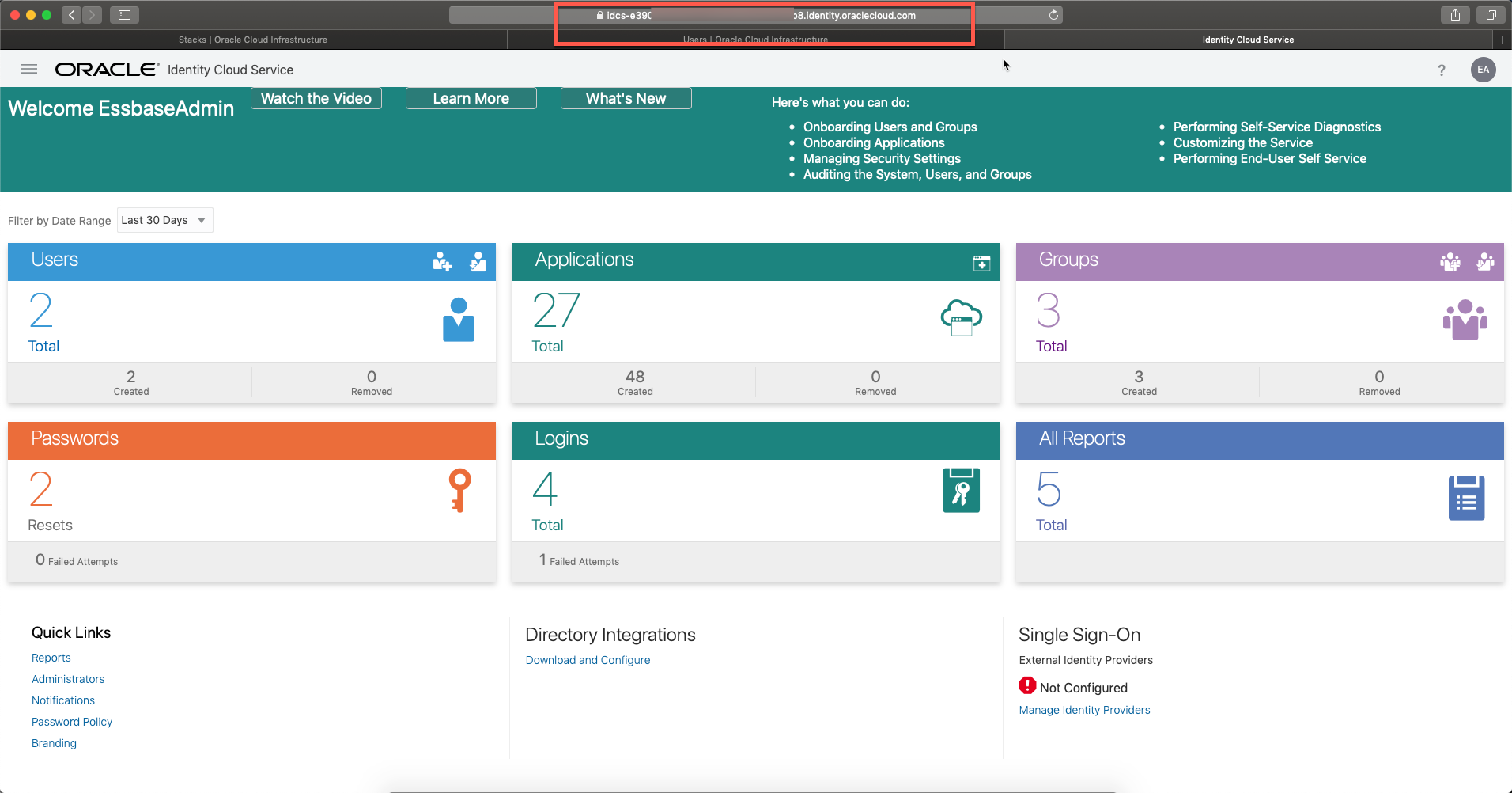 - If you click on the “Outputs” tab, you will see your URL and other pieces of info needed to re-enter the URLs on the Essbase Application page on the IDCS Console.
