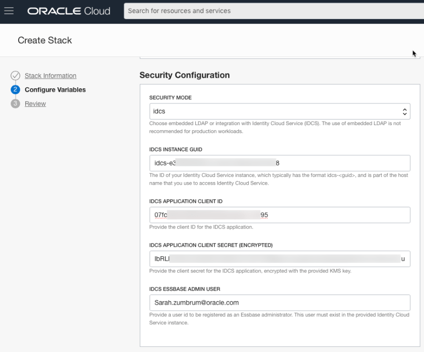 In the IDCS Application Client ID, enter the Essbase Application ID from from your text editor.