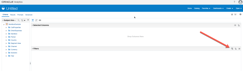 - In OAC, in the Answers -> Criteria tab, create a new filter: