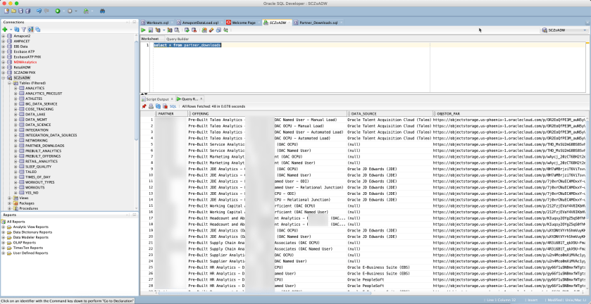 I’ve been building out an internal tool for the past few days and today I wanted to display a column that had URL/HTML/download links for some PDFs, PowerPoints, etc that I uploaded to OCI Object Storage and created a Pre-Authenticated Request (PAR) for access. I loaded everything into a table in my ADW instance as follows: