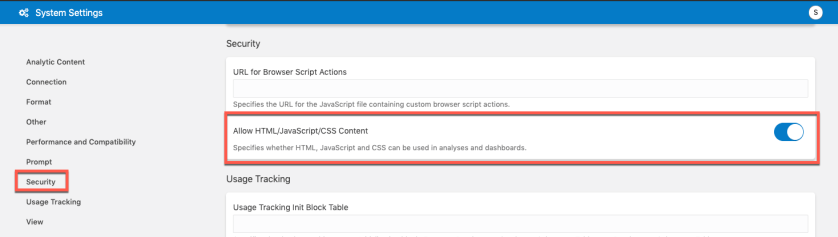 The first thing you need to do is go to your Console from the homepage and choose “System Settings”. Within System Settings, go to the Security settings. There is a toggle to “Allow HTML/JavaScript/CSS Content”. Turn this on.