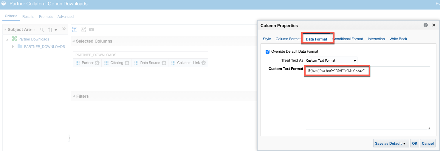 Next, I wanted to take this URL column and display it in an OAC Analysis, but without the really long PAR link.